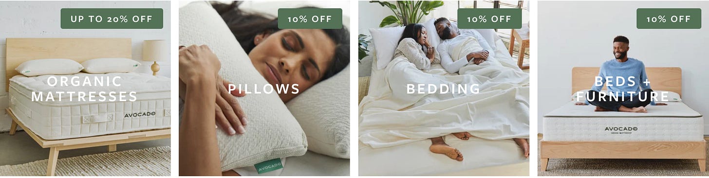 Enjoy 15% off certified organic, Avocado Green Mattress and Vegan Mattress.